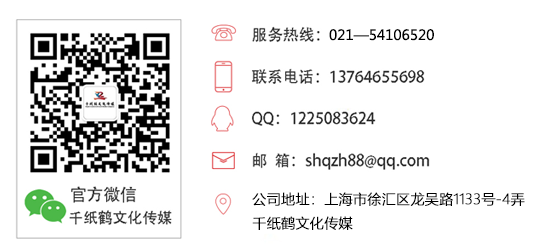 千紙鶴文化傳媒(上海)有限公司,于2012年9月開始涉足影視制作領(lǐng)域,立志打造行業(yè)品牌。經(jīng)過多年發(fā)展公司已經(jīng)具備了以專業(yè)培訓(xùn)、影視制作、平面設(shè)計(jì)、活動(dòng)策劃為主的核心競(jìng)爭(zhēng)力。公司“以人為本,創(chuàng)新為魂,服務(wù)至上”的企業(yè)文化鑄就了千紙鶴在客戶間的良好口碑。千紙鶴聯(lián)動(dòng)客戶,不負(fù)信任,不忘初心,它將不斷提升服務(wù)質(zhì)量和技術(shù)水平,致力于為客戶提供專業(yè)且貼心的服務(wù)。